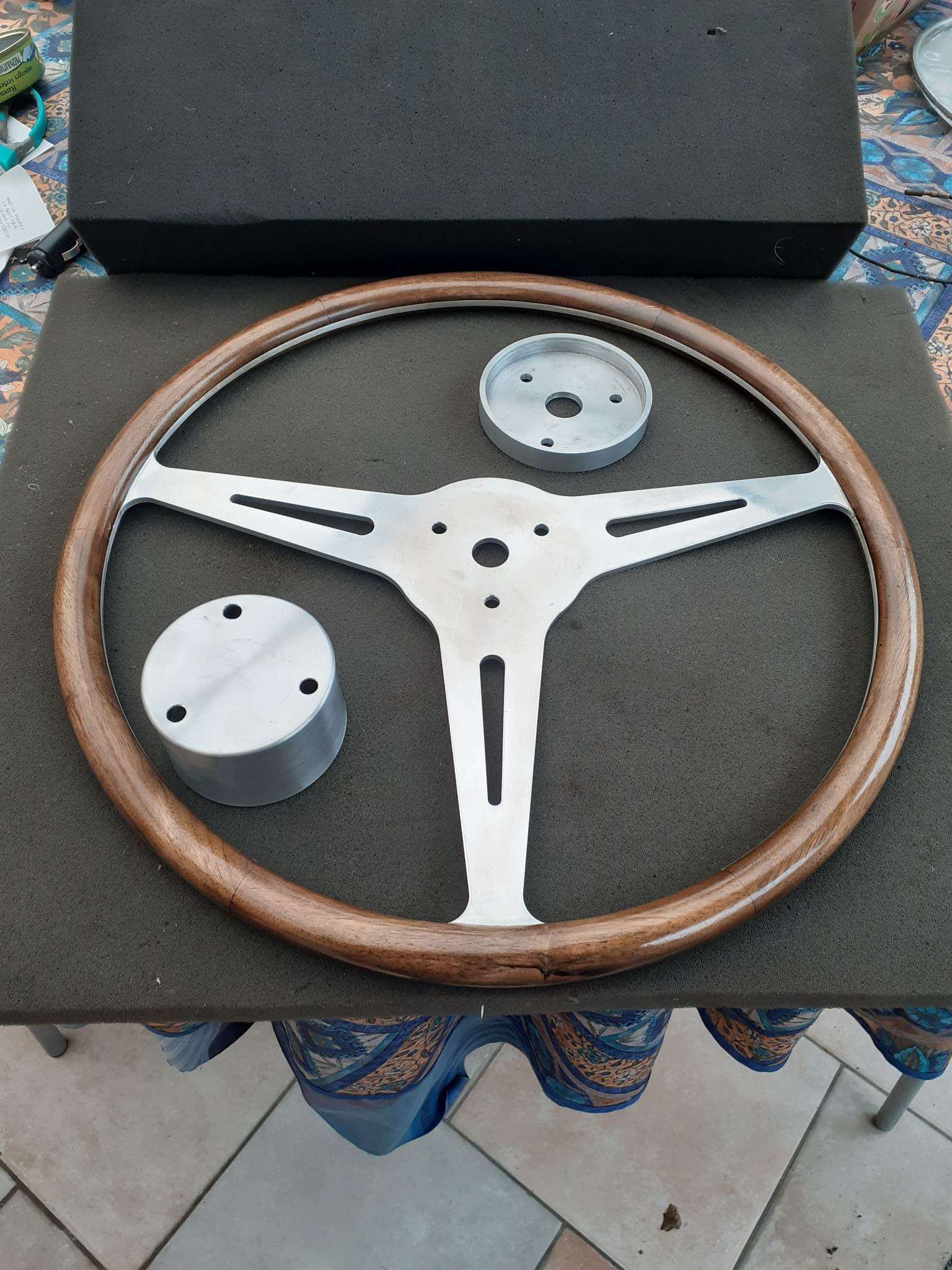Le kit se compose d'un volant, d'un enjoliveur de colonne de direction et d'une entretoise de fixation du logo D.B ( logo non fourni)